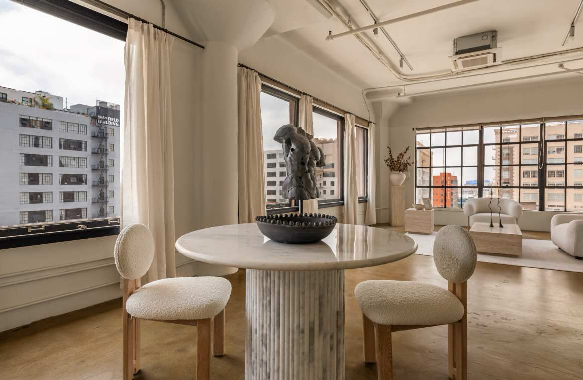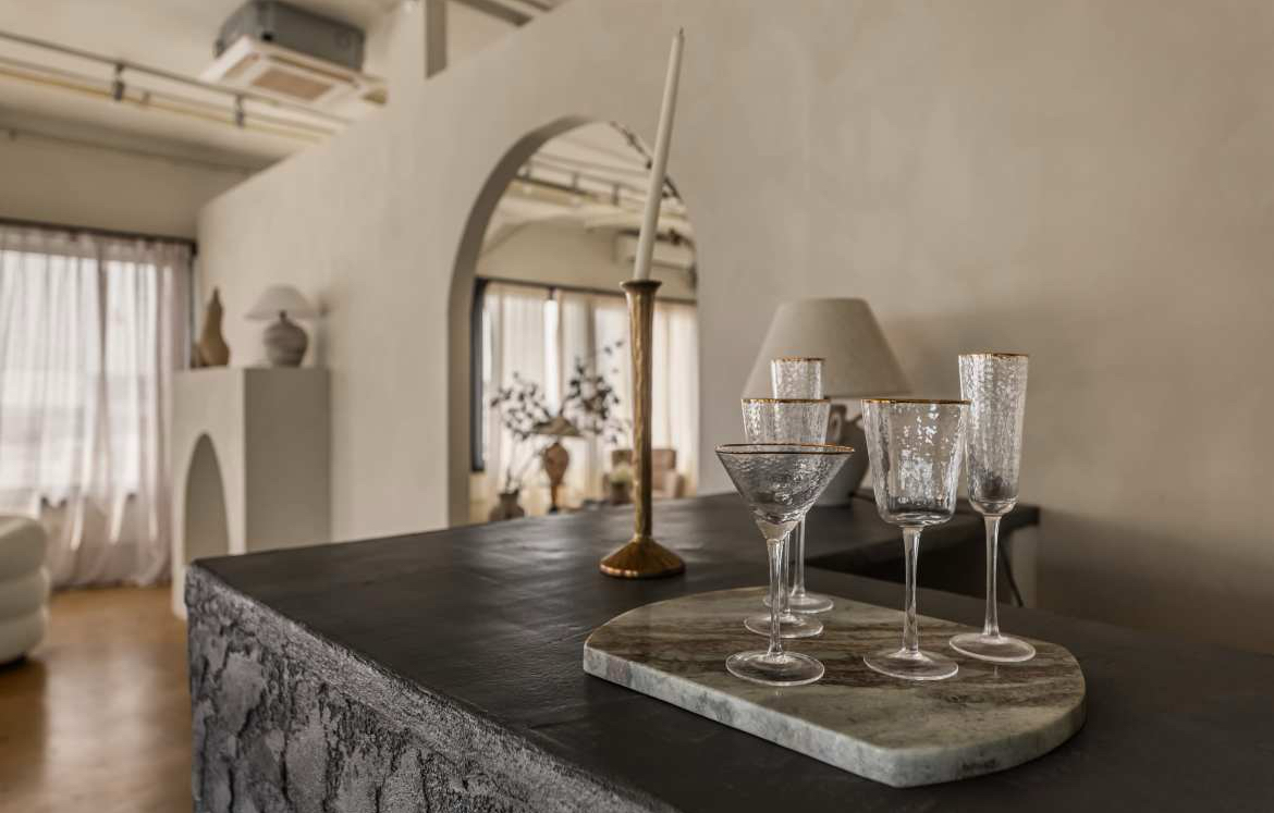 This time we’re stepping into a modern Los Angeles space reimagined through the lens of Greek Mythology. The setting combines contemporary design with divine storytelling—think golden light, marble tones, velvet seating, and warm textures that bring Olympus into the present day.