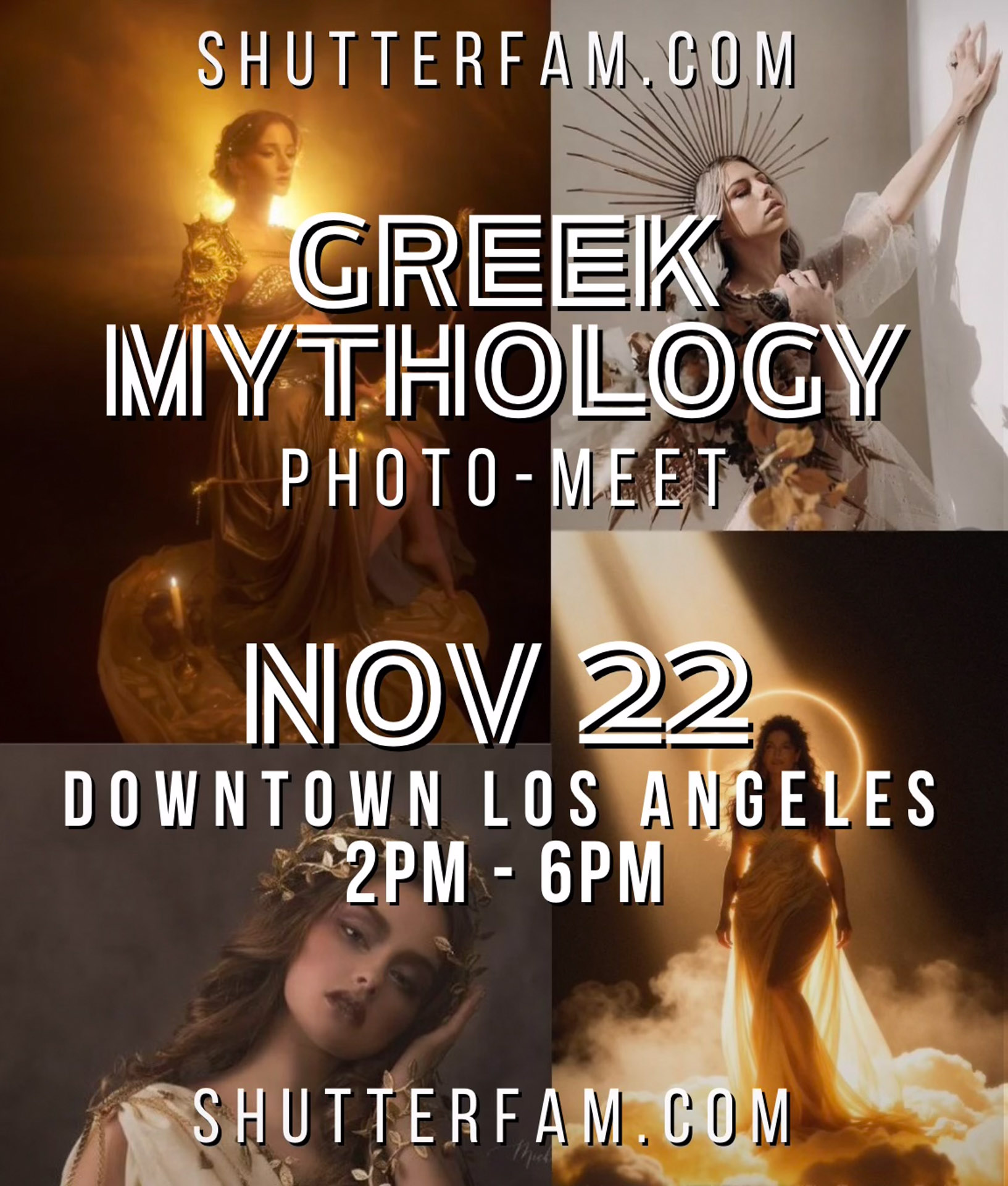 A ShutterFam Photo Meet is an open creative session where photographers and models collaborate in a styled environment. Once we begin, it’s a creative free-for-all—build your portfolio, connect with other artists, and experiment with bold new concepts.